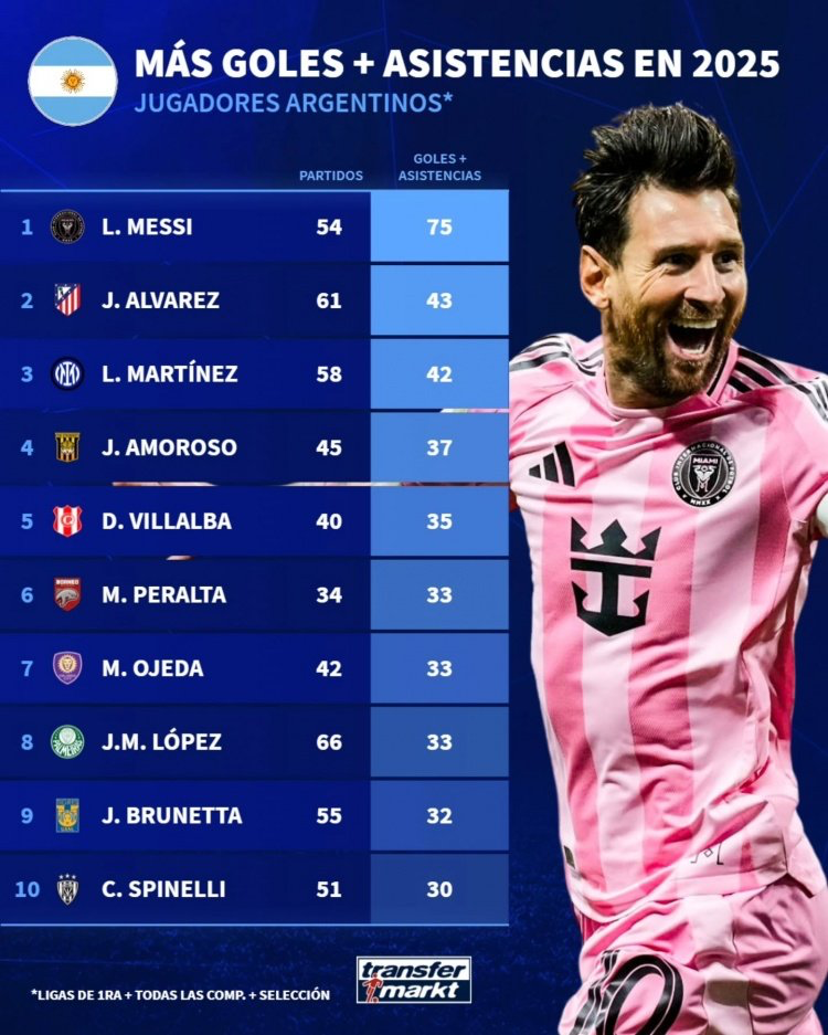 在数据上,同样支持梅西是阿根廷最佳球员的观点。根据德转近日的统计,梅西依旧是去年阿根廷队内在国家队和俱乐部上的造进球第一人,而且效率惊人。梅西的数据是54场造进球75个,独一档!第二是61场43进球的阿尔瓦雷斯,第三是58场42进球的劳塔罗。
